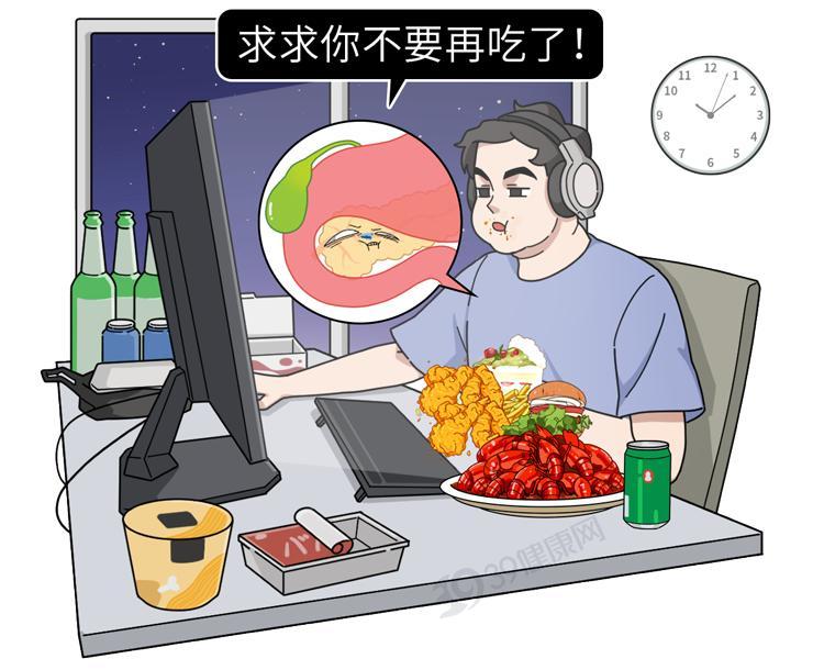 暴飲暴食會導致消化系統的“暴走”,過多難消化的高脂肪食物進入胃腸道後,胰腺就需要加班加點分泌更多的消化酶,以此促進脂肪的分解吸收,長期以往就會使胰腺不堪重負,導致損傷。