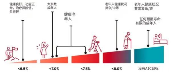 提供具體可行的個體化血糖目標。2025版《糖尿病管理標準》提供了更加具體和可行的個體化血糖目標,旨在幫助患者更好地管理血糖,降低併發症風險。對於無嚴重低血糖或頻繁低血糖影響健康或生活質量的非妊娠成人患者,糖化血紅蛋白(A1C)目標小於7%是合適的;對於預期壽命有限或治療弊大於利的患者,更適合較爲寬鬆的A1C目標(如圖)。蘇本利提示,在制定和調整血糖管理方案時,還應根據患者的具體情況和醫生的判斷來確定。