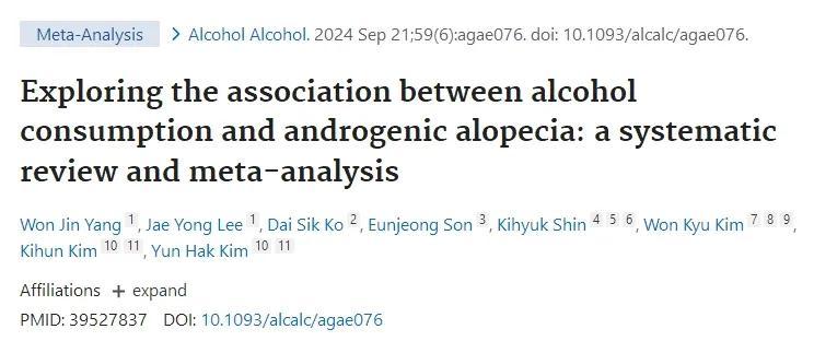 該研究由韓國釜山國立大學醫學院的科研人員完成,共涉及7072名參與者。結果顯示,飲酒人羣中發生雄脫的人數,是不飲酒人羣中發生雄脫人數的1.4倍,對於男性而言,這一數字爲1.31倍。