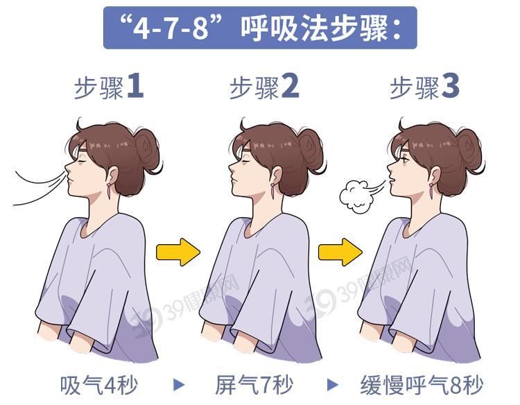 睡前可以照着這個步驟做三遍:吸氣4秒,屏氣7秒,緩慢呼氣8秒。通過延長呼氣時間,刺激副交感神經系統,幫助身體進入放鬆狀態。