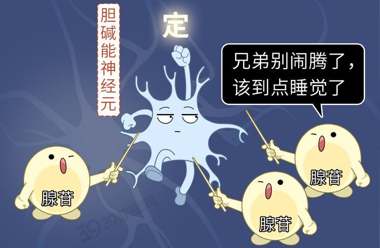 而腺苷作爲大腦中的一種化學信使,會在身體甦醒時慢慢積累,然後通過抑制膽鹼能神經元的活性來幫助大腦準備進入睡眠狀態(膽鹼能神經元越活躍,大腦就越容易從睡眠狀態中覺醒)。