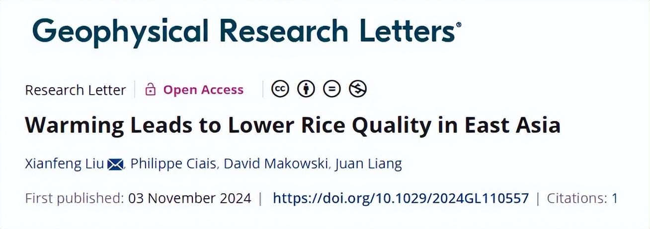 近日,陝西師範大學等機構的學者在國際學術期刊《地球物理研究快報》刊發研究顯示,大米的品質正在悄然下降,背後主要推手是氣候變化。