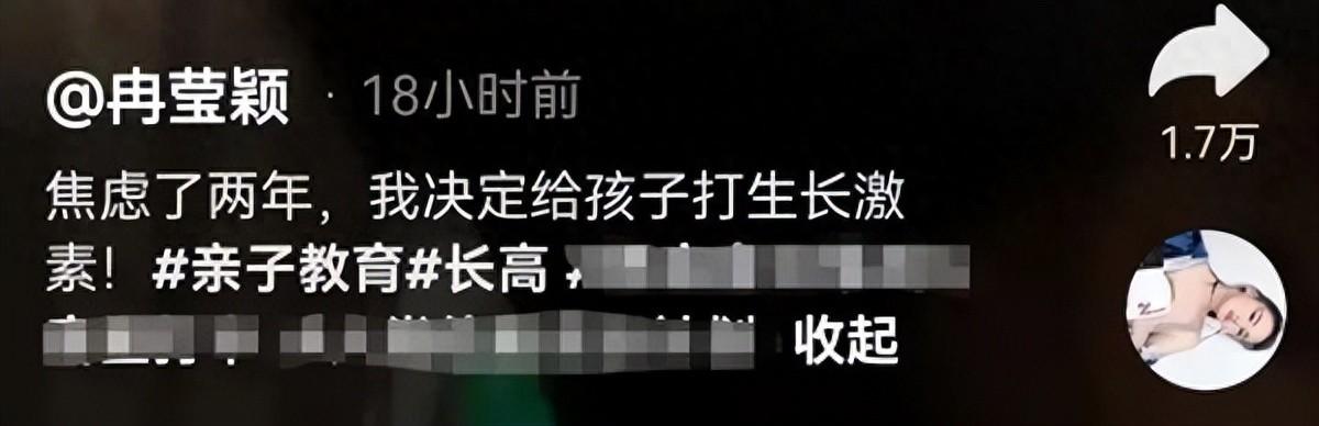 父母都希望孩子能茁壯成長、擁有高挑身材,然而身高往往受到基因、後天環境等多方面因素的影響。近日,主持人冉瑩穎在社交平臺分享的一系列視頻引發了熱議。她和奧運冠軍鄒市明的二兒子8歲時就不怎麼長個了,今年11歲只有136釐米,明顯比同齡孩子矮一頭。在糾結了兩年後,經醫院檢查,決定給孩子打生長激素。12月19日,冉瑩穎發佈最新視頻分享,孩子打生長激素的第25天已經長高1.4釐米。對此,不少對孩子身高感到焦慮的家長也躍躍欲試。