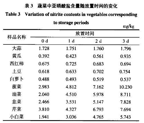 2、 別同玉,許加生,楊麗莉,等. 儲藏時間對不同種類蔬菜中亞硝酸鹽含量的影響[J]. 食品研究與開發,2012,33(12):205-207.