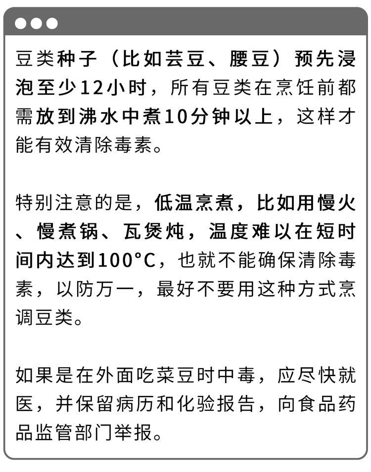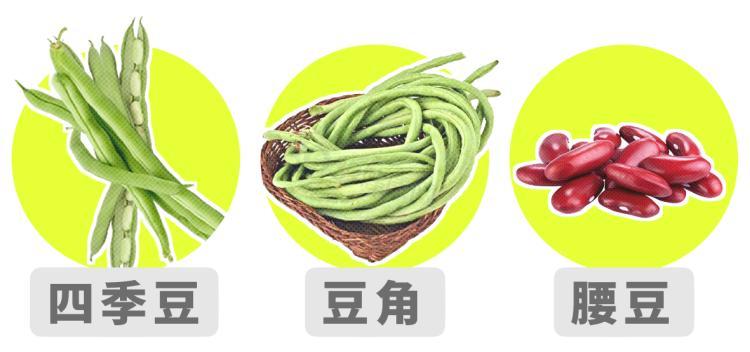 豆類植物,尤其是菜豆中含有較多的植物血球凝集素。菜豆在不同地方叫法不同,長相也不一,叫四季豆、芸豆、扁豆、豆角、腰豆的都需警惕。