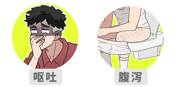 通常在食用後1個小時左右就會出現腸胃不適(一般不超過5小時),主要表現爲嘔吐、腹瀉、腹痛,也有的人會出現頭暈、頭痛、胸悶、出冷汗、心慌、胃部燒灼感等症狀。