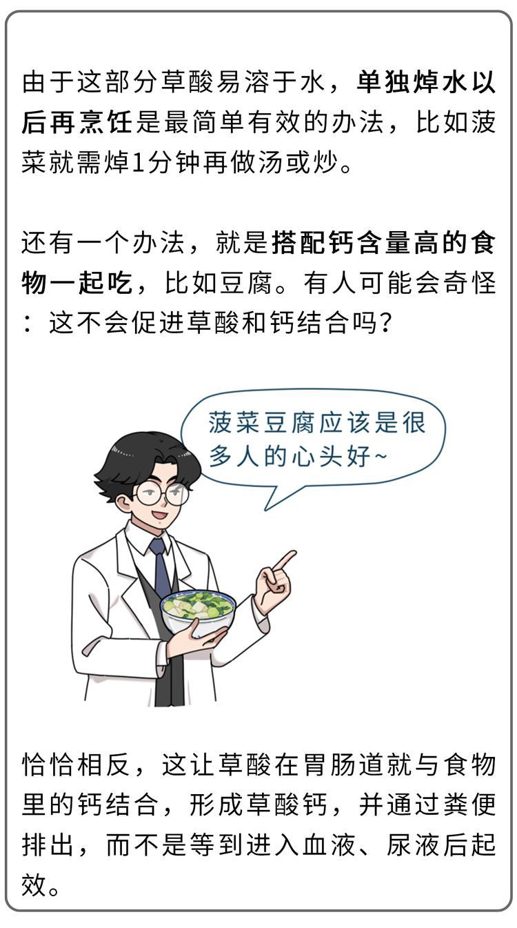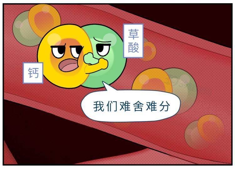 草酸從小腸進入血液後,喜歡和其中的鈣離子結合,形成難溶於水的草酸鈣。一般情況下,這些草酸鈣會被腎過濾,隨着尿液排出體外。