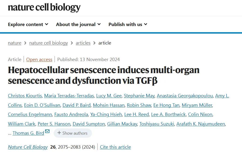 近期,英國格拉斯哥大學發表在《自然-細胞生物學》上的研究揭示,肝細胞衰老不僅與肝功能衰退密切相關,還會導致全身多器官衰老。