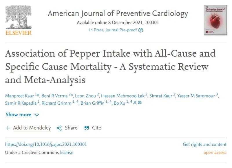 對此,研究人員認爲與辣椒內獨有的抗氧化劑辣椒素相關。該物質可促進脂肪代謝、能量消耗,還能改善血糖控制,對改善身體的代謝綜合徵、肥胖風險均有好處,從而可降低心血管疾病的死亡風險。