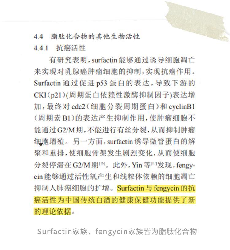 白酒中的脂肽化合物具有抗癌、抗病毒等作用。