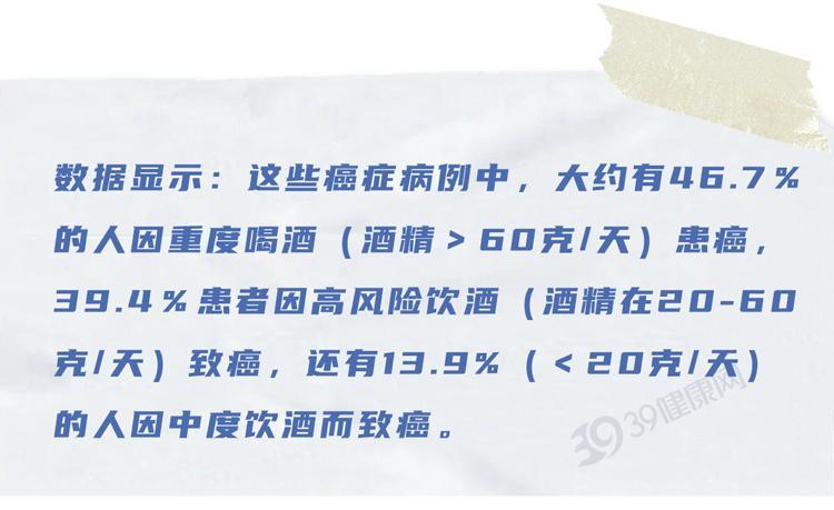 而據2020年《柳葉刀·腫瘤學》雜誌一項報告:全球約有74萬新發癌症病例與飲酒有關,其中中國佔了28萬例。