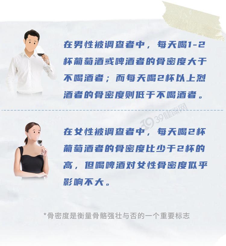 至於強筋勁骨,《美國臨牀營養學雜誌》在2009年研究過“飲酒對人體骨骼的影響”,結果顯示: