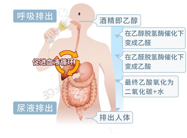 白酒被身體吸收、代謝後會產生乙醛,加上酒精本身具有擴張血管的作用,可拓寬皮膚的毛細血管,加快血液循環。
