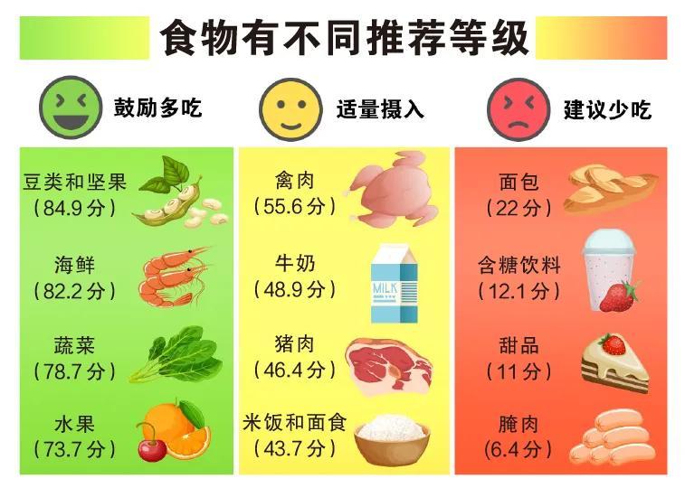通過具體得分,研究人員劃分了不同食物的推薦程度: