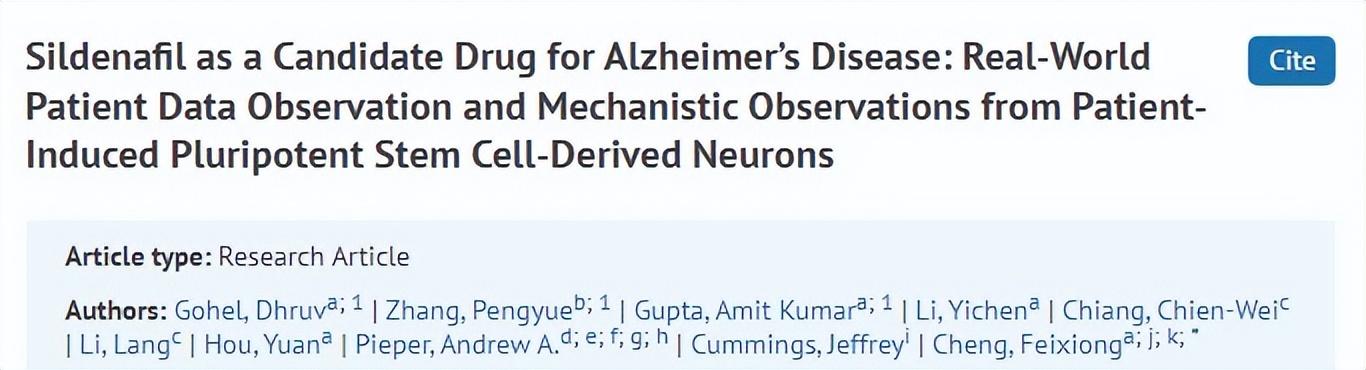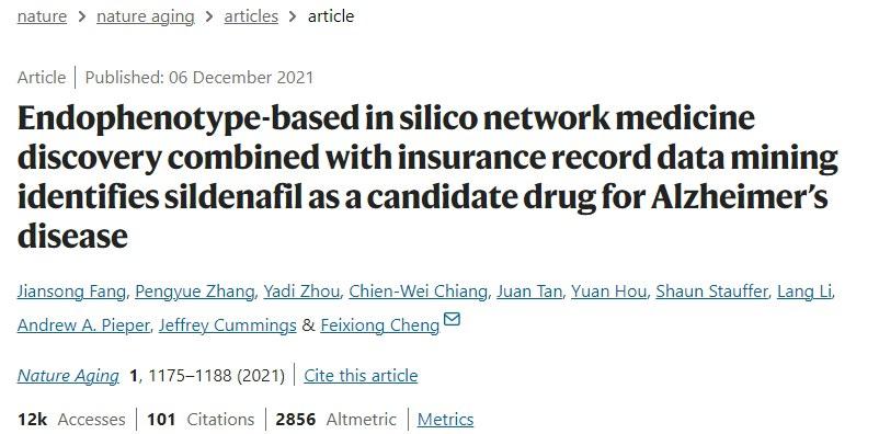 華裔醫學家程飛雄團隊其實早在2021年就開始了相關的研究,結果發表在nature子刊上,研究稱西地那非可能與阿爾茲海默症的風險下降69%相關,但是該研究結論存在一定的侷限性,受試者多爲有ED的男性患者,有男女比例失調的問題。