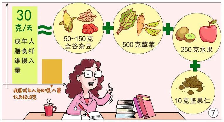 在此基礎上,加些細糧、豆製品以及薯類,膳食纖維很容易就能達到一天30克的推薦攝入量。▲
