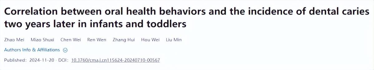該調查基於北京市口腔公共衛生項目網絡數據系統,調取同時在2021年參加0~3歲嬰幼兒口腔健康管理項目和2023年參加3~6歲氟化泡沫防齲公共衛生服務項目的1663名兒童,發現5種不良口腔習慣容易導致嬰幼兒2年後患齲率和齲失補牙數升高,分別是:經常含奶瓶入睡、喝夜奶後不漱口、不堅持每天刷牙、不使用牙線、日常攝入甜點類零食較多。