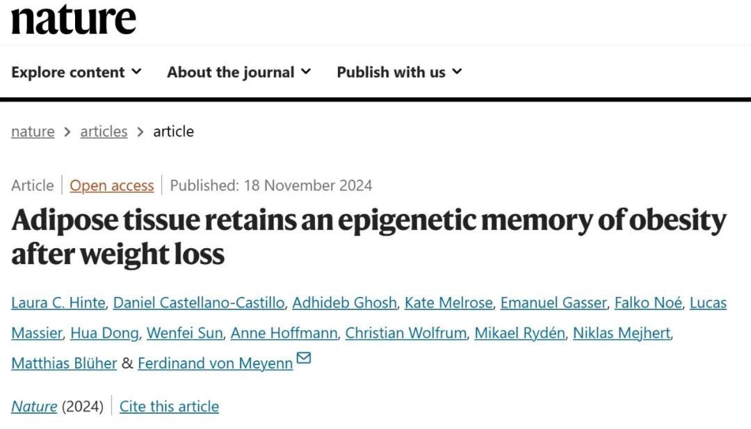 上述研究由蘇黎世聯邦理工學院科研團隊發表,科學家們分析了一批成功減重者的脂肪組織,發現曾經肥胖時出現的細胞轉錄變化,在減重2年後仍然存在,即使已經瘦了,這些變化也沒能恢復原狀。