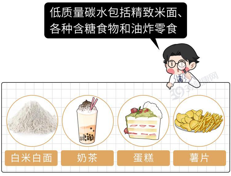 低質量碳水則主要指精製碳水化合物,這種食物往往糖分高、纖維含量低,喫多了不利於心血管健康。