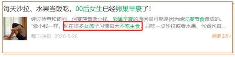 對於女性來說,不喫主食、過度節食還可能會引起卵巢早衰。