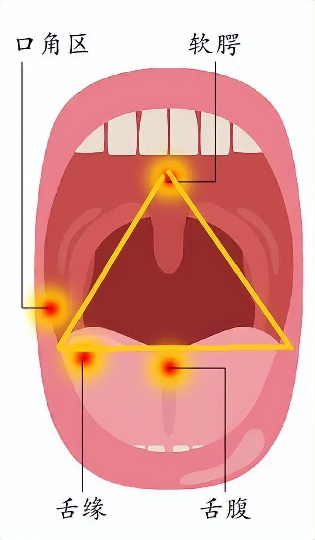 危險潰瘍一般單個出現,發病位置固定,常位於口腔內的“危險三角區”,即舌緣舌腹、口角區內側(兩側頰部)、軟齶複合體等部位。