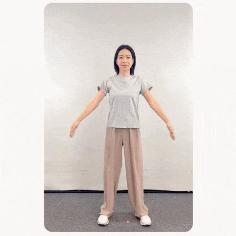 兩腳平行開立,與肩同寬,舉起雙臂,掌心朝上,用力上撐,緩緩抬頭向上看。