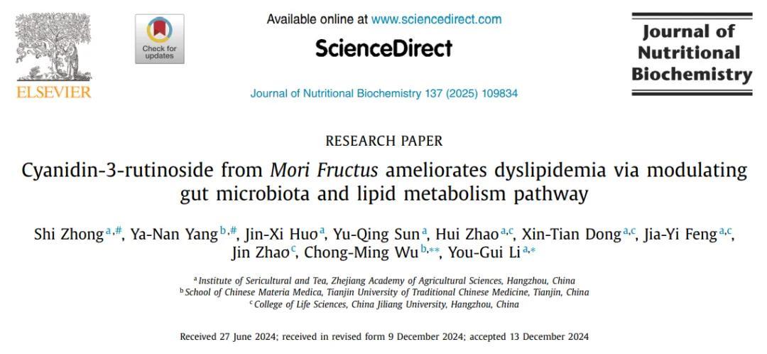 近日,發表在美國《營養生物化學雜誌》的一項研究發現,作爲傳統的藥食兩用之品,桑葚可輔助降血脂,其中發揮作用的是一種紫色物質——花青素。