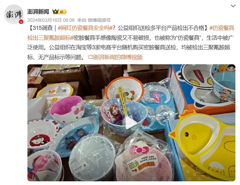 央視曾有過相關報道,根據仿瓷餐具質檢報告顯示,合格率竟然不足20%。上海有關部門此前也有過類似抽查,在76批次的產品中,就出現9個不合格批次,其中5個還出現了三聚氰胺遷移量超標!
