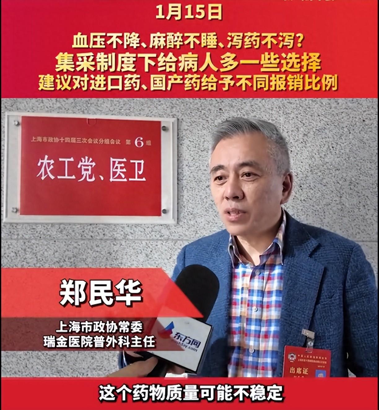 提案主筆人、上海市政協委員、瑞金醫院普外科主任鄭民華更是用“血壓不降、麻藥不睡、瀉藥不瀉”來形容臨牀用藥困境,引發輿論關注。