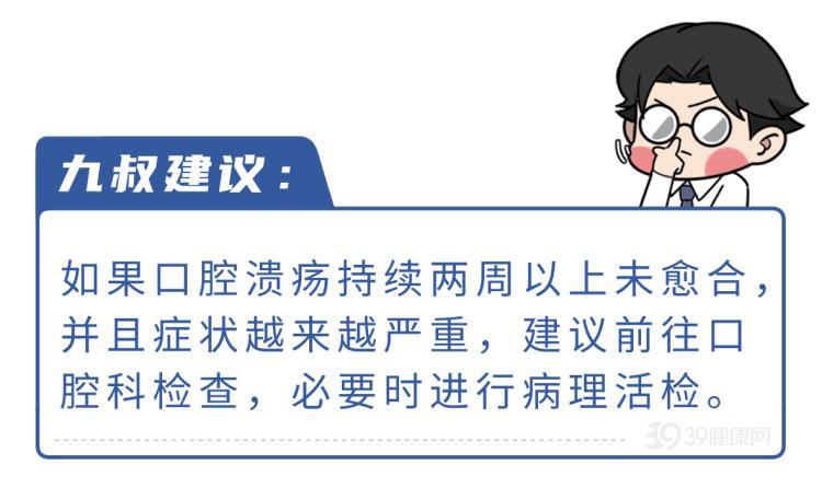 可要是口腔潰瘍長期不癒合,超過兩週還沒好,而且潰瘍面越來越大,疼痛越來越明顯,甚至影響到喫飯、說話,應高度警惕口腔癌的可能。