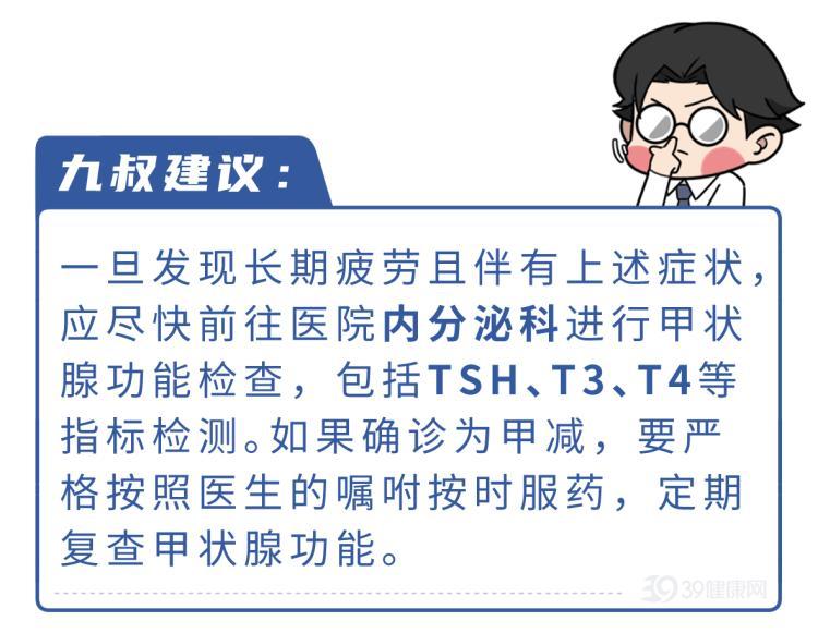 不過要是長期感到疲勞,哪怕經過充分休息,第二天起來還是覺得渾身沒勁兒,像被抽乾了力氣一樣,那就要小心了,因爲這可能是甲狀腺減退的表現。