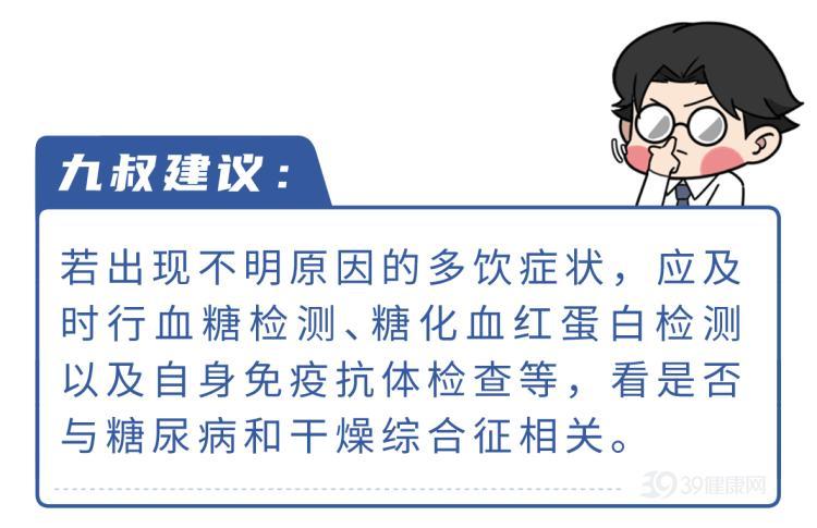但如果頻繁口渴的情況持續存在,就要警惕乾燥綜合徵或者糖尿病了。