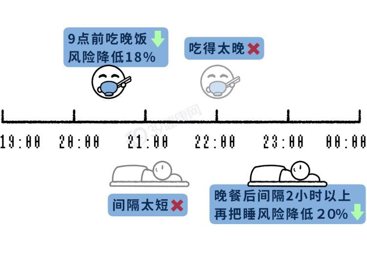具體來說,與晚上21點後喫晚餐相比,20點前喫晚餐的人患腦血管疾病(包括中風等)的風險降低28%;