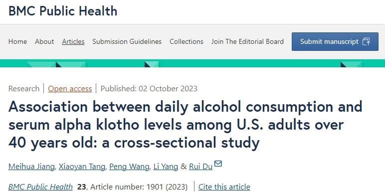 Klotho也被認爲是一種衰老生物標誌物。而BMC Public Health期刊上一項來自中部戰區總醫院研究團隊的研究,還發現了Klotho和飲酒量的關係。