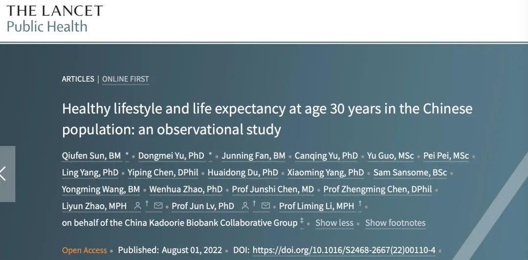 北京大學李立明、呂筠和來自中國疾病預防控制中心的趙麗雲等人帶領的研究團隊在《Lancet Public Health》發表了一項研究,調查了健康生活方式對我國國人30歲時預期壽命的影響。