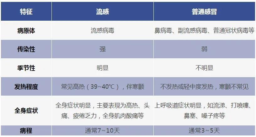 而流感往往起病急、進展快,多有明顯發熱(部分人體溫可達39~40°C),伴咽痛、畏寒、頭痛、肌肉關節痠痛、極度乏力、食慾減退等全身症狀,也可有嘔吐、腹瀉。