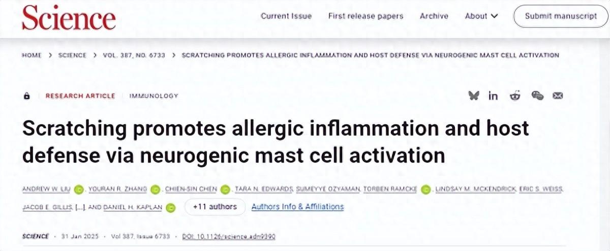 當背部突然發癢,經過百般努力準確抓撓到那個位置時,人瞬間會有一種“舒爽”感。除了感官體驗外,美國賓夕法尼亞大學研究人員最新發表在《科學》雜誌的研究發現,撓癢癢這一動作還可激活局部免疫反應,幫助皮膚抵抗有害感染。