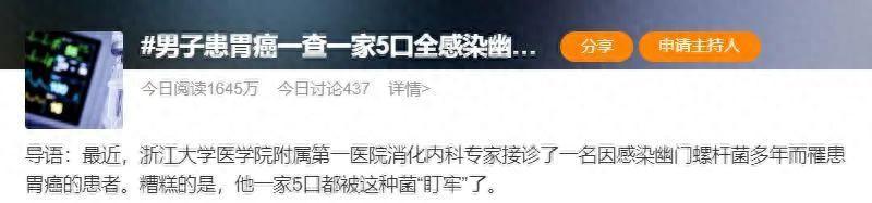 此前,網上熱搜榜上的一個新聞“男子患胃癌,檢查發現一家五口全部感染幽門螺桿菌”引起了很多人的關注。
