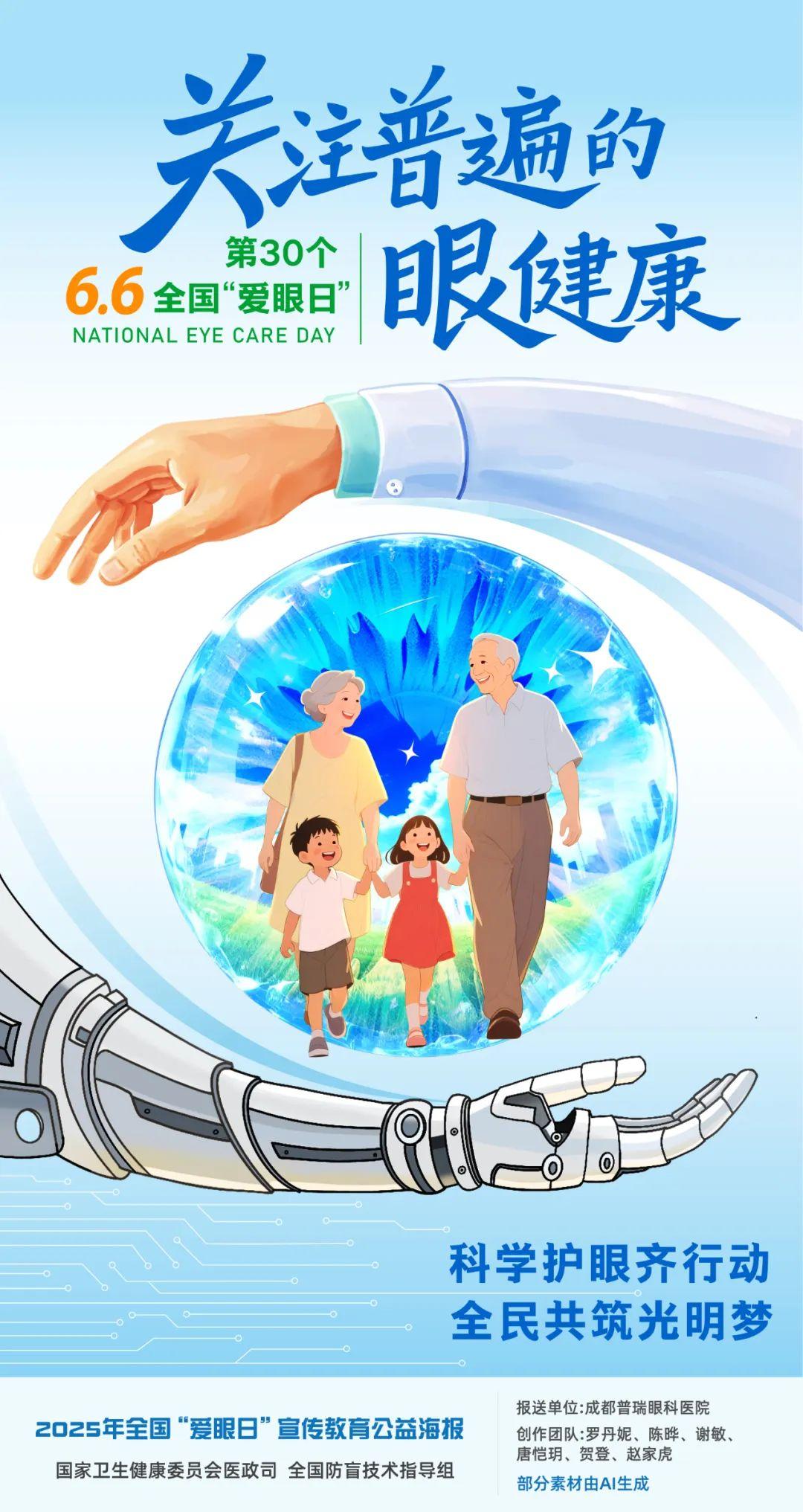 2025年6月6日是第30個全國“愛眼日”。今年活動的主題是“關注普遍的眼健康”。爲充分調動社會各界積極性,前期面向各地徵集了宣傳海報。各地積極參與,報送了超過700張海報。經全國防盲技術指導組組織專家評審,遴選了5張公益海報。現在國家衛生健康委官網發佈,供各地使用。