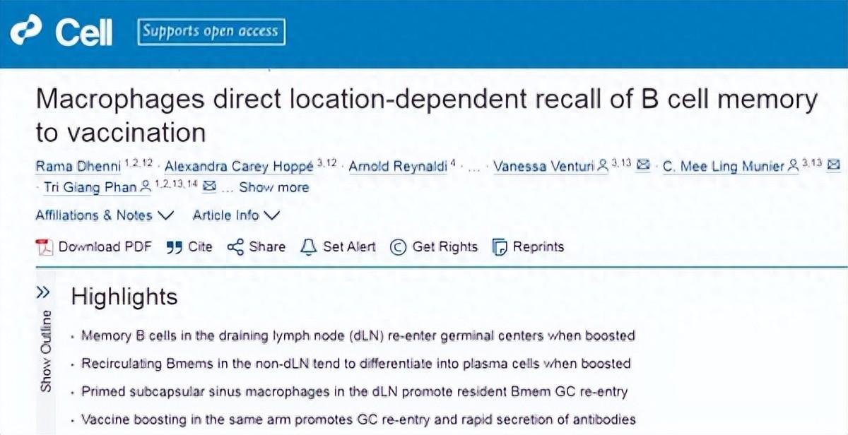 新南威爾士大學加文醫學研究所牽頭的這項研究發現,接種疫苗後,特定部位的巨噬細胞(可以識別、吞噬病原體,並調節免疫細胞活性)能夠更有效引導B細胞(負責產生抗體、識別病原體、形成免疫記憶的關鍵細胞)的記憶,同時激活其反應,產生大量抗體,達到增強免疫效果。當身體再次遇到相同病原體時,B細胞的記憶功能可以保證免疫功能的迅速應答。
