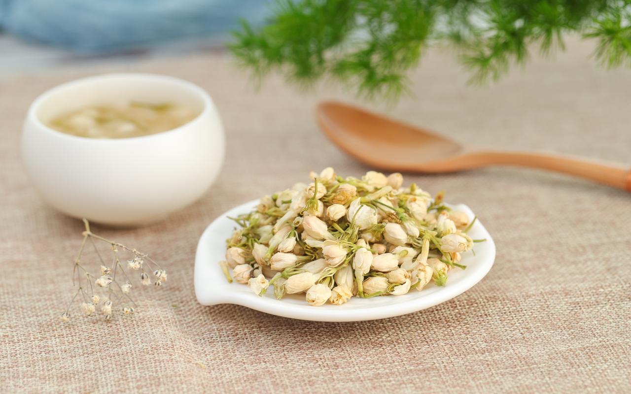 茉莉花茶是將茶葉和茉莉鮮花進行拼和、窨制,使茶葉吸收花香而成。其香氣鮮靈持久,滋味醇厚鮮爽,既有綠茶的清爽,又有茉莉花的芬芳。茉莉花具有理氣開鬱、闢穢和中的功效,在夏天飲用,能緩解暑熱帶來的胸悶、噁心等不適症狀,還能舒緩情緒,減輕煩躁感。此外,茉莉花茶中的咖啡因和茶多酚能促進腸胃蠕動,幫助消化,改善夏日因食慾不佳導致的消化不良問題。沖泡茉莉花茶時,水溫90℃左右即可,可根據個人口味決定沖泡次數。