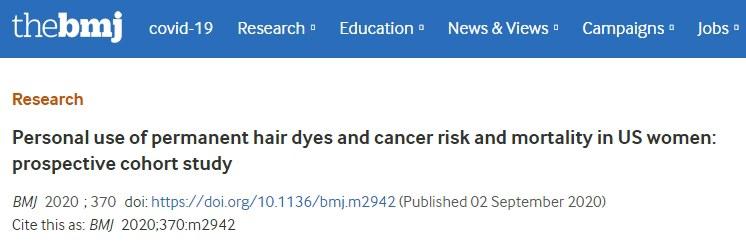 哈佛和奧地利維也納醫科大學等機構組成的科研團隊在《英國醫學雜誌》就發佈了一篇關於使用永久染髮劑與癌症發病關係的研究,研究員通過對117200名女護士染髮情況與癌症風險進行分析,發現在隨訪的36年間,共出現20805名女護士確診癌症,其中4860人因此而死。
