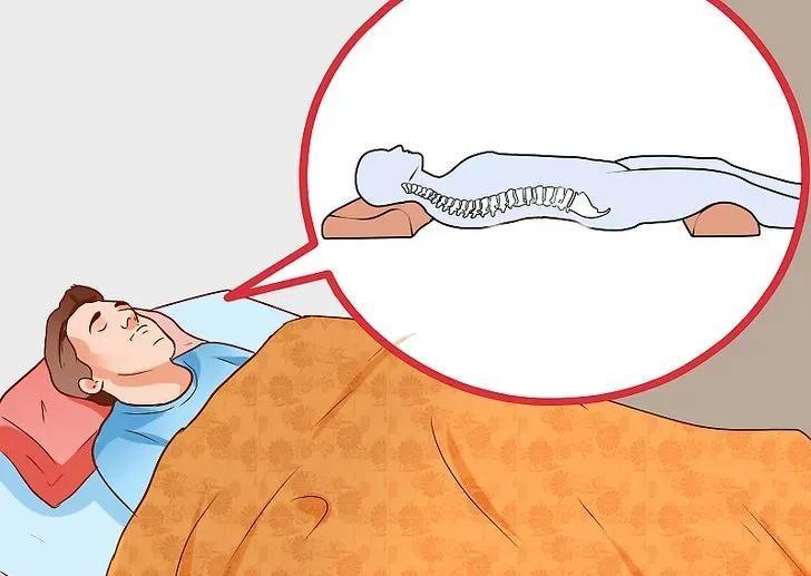 平躺時可以在膝蓋下面墊一個小枕頭或小的毛巾卷,讓脊柱更好貼合牀面,有助緩解腰椎間盤的壓力。