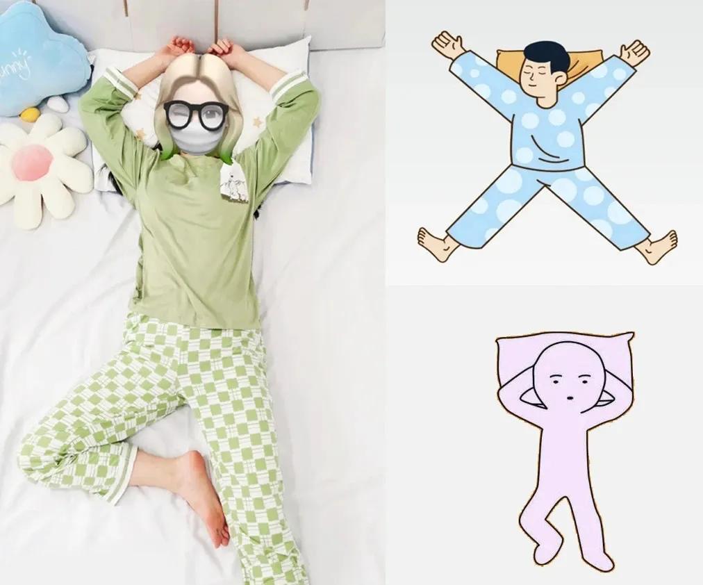 “跨欄式”睡姿,通常是把上方的膝蓋搭下來,前胸壓向牀的一側,同時一側手臂往往被壓在身下。
