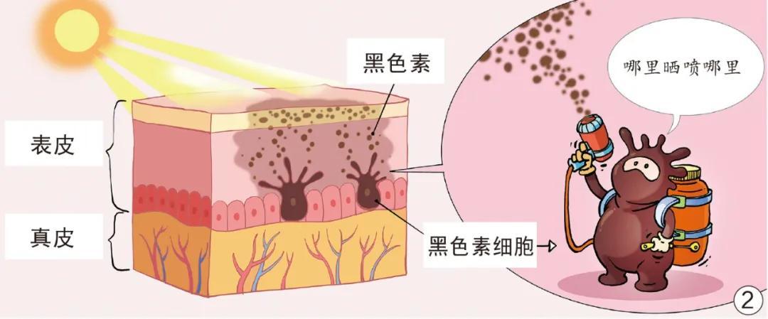 正常情況下,黑色素均勻分佈在皮膚中,但受先天、日曬等因素的影響,黑色素細胞會聚集在皮膚內表皮層和真皮層,形成巢狀的痣。