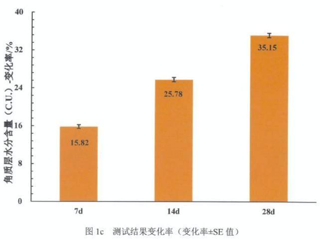並且,使用 1 周後,4 周後,皮膚的角質層含水量分別爲:+ 15.82% 和 + 35.15%。