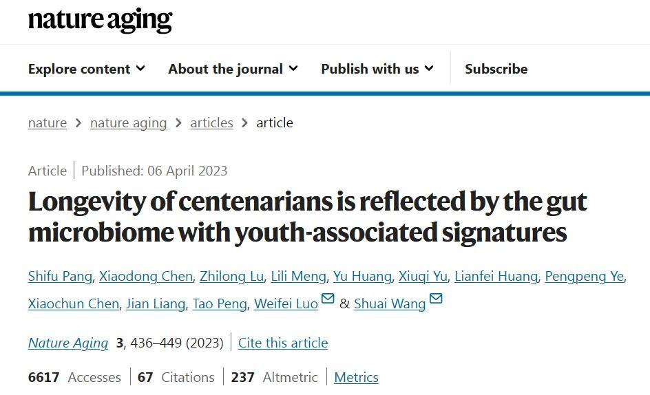 2023年,權威期刊《自然》子刊《衰老》發表中國廣西科學院的一項研究發現,腸道菌羣多樣化和腸道內有益菌羣的存在,有助延年益壽。