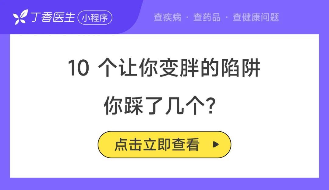 減肥是一場持久戰,除了控制好合理的速度,日常生活中也有很多需要注意的細節,有些可能會阻礙你減肥。我們整理了 10 個可能會讓你悄悄變胖的陷阱,看看你有沒有中招。點擊下方卡片即可自測。身體小毛病不要拖!一對一諮詢醫生 對症治療好得快首次問診 9.9 元起策劃製作策劃:Nix | 監製:枕玉圖片來源:丁香醫生設計團隊