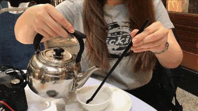 在廣東,燙碗被稱爲“long碗”,這一動作承載着獨特的文化習俗。老茶樓時代,餐具經三道清洗後仍留有消毒劑氣味,用茶水衝燙既能去味,又暗含“以水爲財”的寓意。