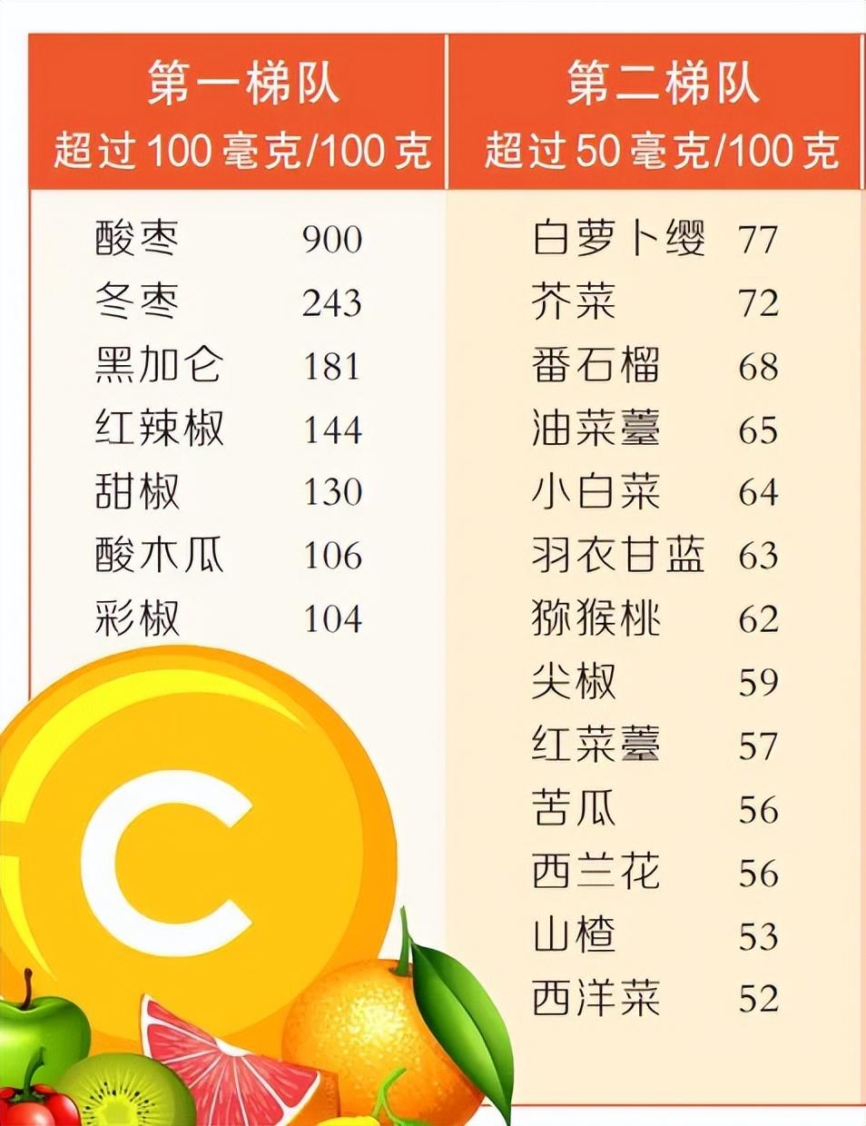 因人體無法自行合成維生素C,需從外源性飲食或補劑中獲取。關陽建議,以食物爲先,膳食補充劑(多種維生素礦物質片劑、泡騰片)其次,藥品最後。天然食物中,新鮮果蔬都是優秀的補充途徑。通常,酸味水果的維生素C含量高於無酸味的,葉菜高於根莖類、瓜果類,但這並不絕對,比如甜椒的維生素C(130毫克/百克)含量遠高於菠菜(32毫克/百克)。只要日常喫夠一斤蔬菜半斤水果,維生素C的攝入便可基本達標。
